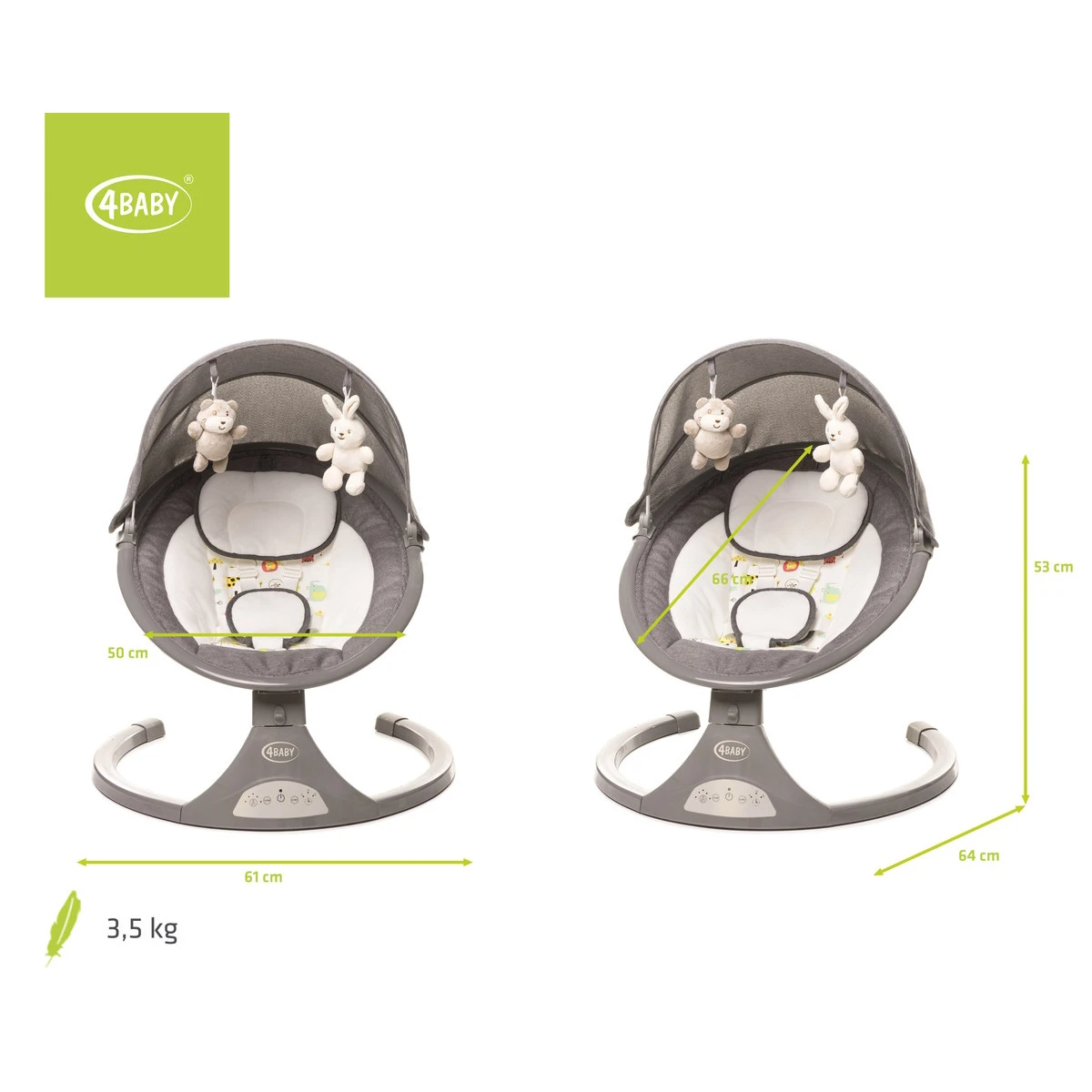 Wat zal je kleintje heerlijk kunnen relaxen in de 4Baby Rock ’n Relax babyschommel! Je hebt de keuze uit 5 snelheden zodat hoe ouder je kleine wordt, hoe sneller hij of zij van links naar rechts kan schommelen. De swing wordt geleverd inclusief afstandsbediening en pluche speeltjes.