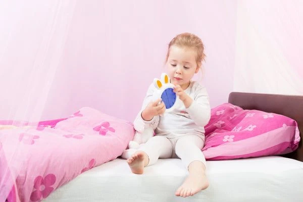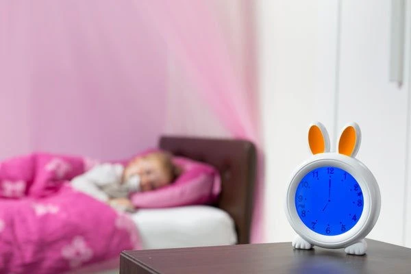 De Alecto slaaptrainer helpt je kindje herinneren wanneer ze nog even mogen blijven liggen en wanneer het tijd is om op te staan. Als ouder kun je eenmalig de slaaptijd en wektijd invullen. Bij slaaptijd kleurt het display blauw en vanaf de wektijd kleurt het display oranje. Een super leuke en handige methode om je kindje tijdsbesef aan te leren!