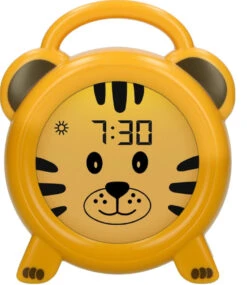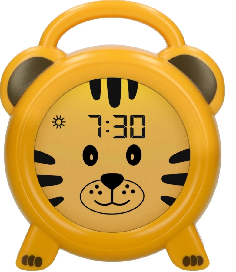De Alecto slaaptrainer helpt je kindje herinneren wanneer het bedtijd is en wanneer het tijd is om op te staan. Als ouder kun je eenmalig de slaaptijd en wektijd invullen. Bij slaaptijd kleurt het display blauw en heeft het tijgertje zijn ogen dicht. Vanaf de wektijd kleurt het display oranje en heeft het tijgertje zijn ogen open. Een super leuke en handige methode om je kindje tijdbesef aan te leren!