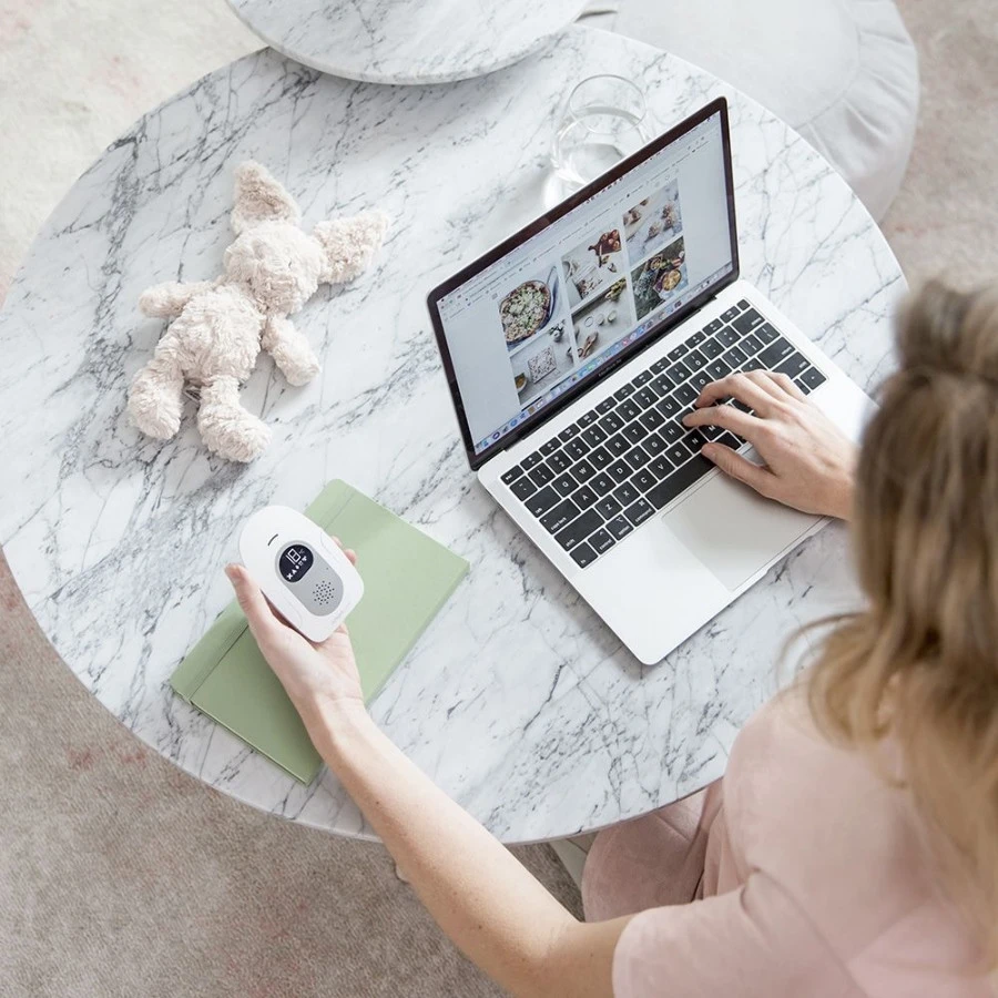 De ouderunit heeft een temperatuurmeter, perfect om te kijken of de kamer van je kindje de juiste temperatuur heeft. De baby unit geeft rood licht aan als het te warm is in de kamer, en blauw licht als het te koud is. Is het lichtje wit dan is de temperatuur op de kamer precies goed.