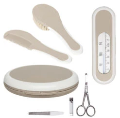 De Bébé-Jou Geschenkset is een leuk setje om cadeau te geven aan (toekomstige) ouders. In deze set zit een kapsetje (borsteltje en kammetje), manicuresetje en een badthermometer. Drie basisproducten die iedereen nodig heeft voor een goede verzorging van een pasgeboren kindje!