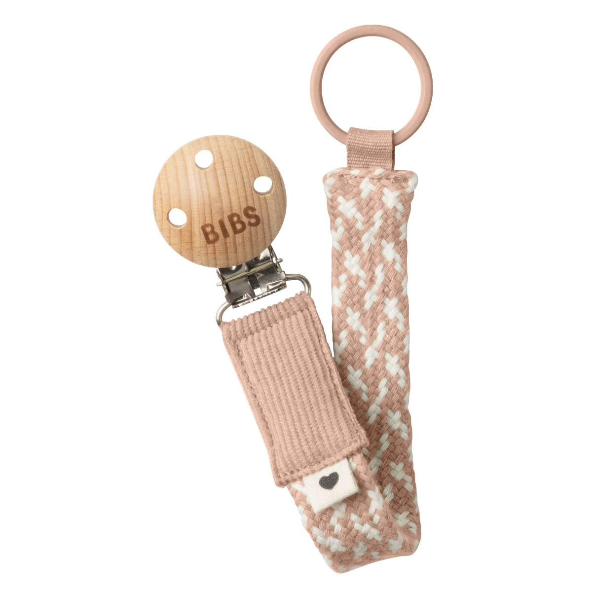 Dit fopspeenkoord heeft aan het ene uiteinde een ring zitten waaraan je de fopspeen vast kan maken (fopspeen niet meegeleverd). Aan het andere uiteinde zit een houten clipje waarmee je het koord aan de kleding van je kleine kan bevestigen.