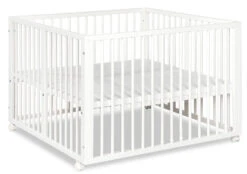 De box is 105 x 101 cm breed en de binnenmaat is 100 x 96 cm. De bodem van de box is in 5 hoogtes te verstellen en groeit dus mee met je kleintje. Daarnaast heeft de box 3 verwijderbare spijlen.