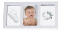 Kleine kindjes worden snel groot, maar er is een makkelijke manier om de kleine handjes en voetjes van je kindje te vereeuwigen! Dat kan namelijk met de Cangaroo 3D Hand and Footprint Kit met fotolijst. Deze leuke set bestaat uit een lijstje waar je in het midden een foto van je kleintje in kan doen en aan de zijkanten 2 driedimensonale gips afdrukken kan maken.