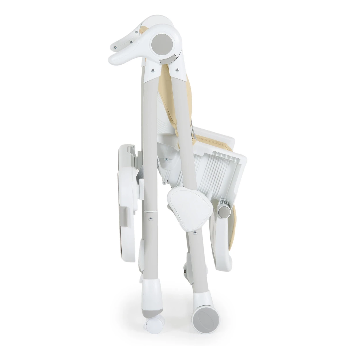 Heb je de stoel even niet nodig? Verplaats hem gemakkelijk met de wieltjes of klap hem eenvoudig in met een klik, zo berg je de stoel gemakkelijk en compact op. Wanneer je kindje wat heeft genoeid, is de bekleding makkelijk schoon te maken met een vochtige doek. Smakelijk!