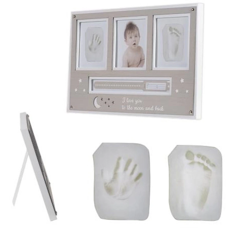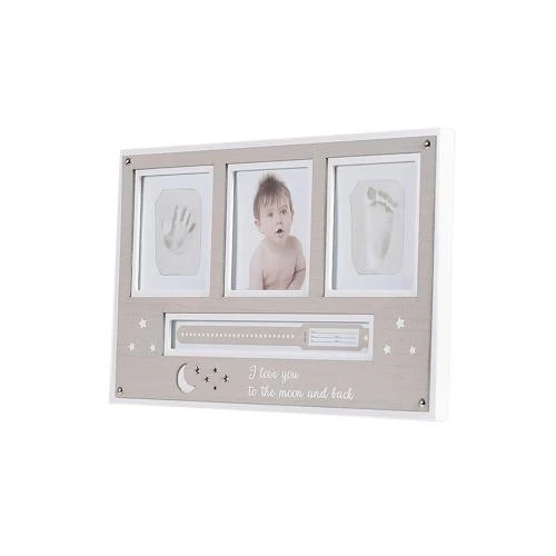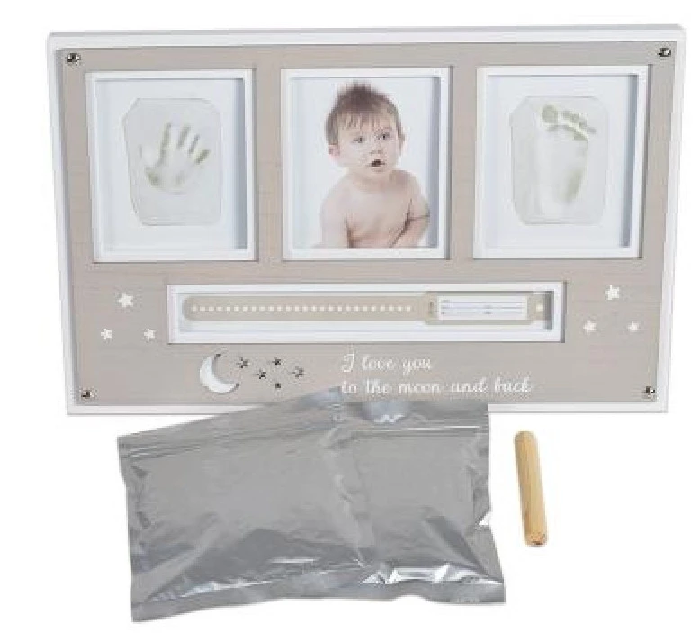 Wil je de voetjes en handjes van je kleine op een afdruk hebben? Dat kan met de Cangaroo hand and footprint set met fotolijst. De gemaakte afdruk kan je samen met een foto in het houten fotolijstje doen. Zo heb je altijd een tastbare herinnering aan de tijd dat je kleine nog echt klein was!