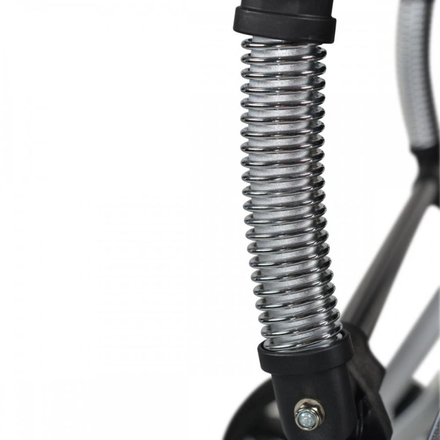 De kinderwagen is voorzien van grote veringen, waardoor je op ieder terrein klakkeloos je wandeling kan maken zonder dat je kindje gestoord wordt. Dankzij de zwenkwielen aan de voorkant rijdt hij ook gemakkelijk door kleine straatjes.