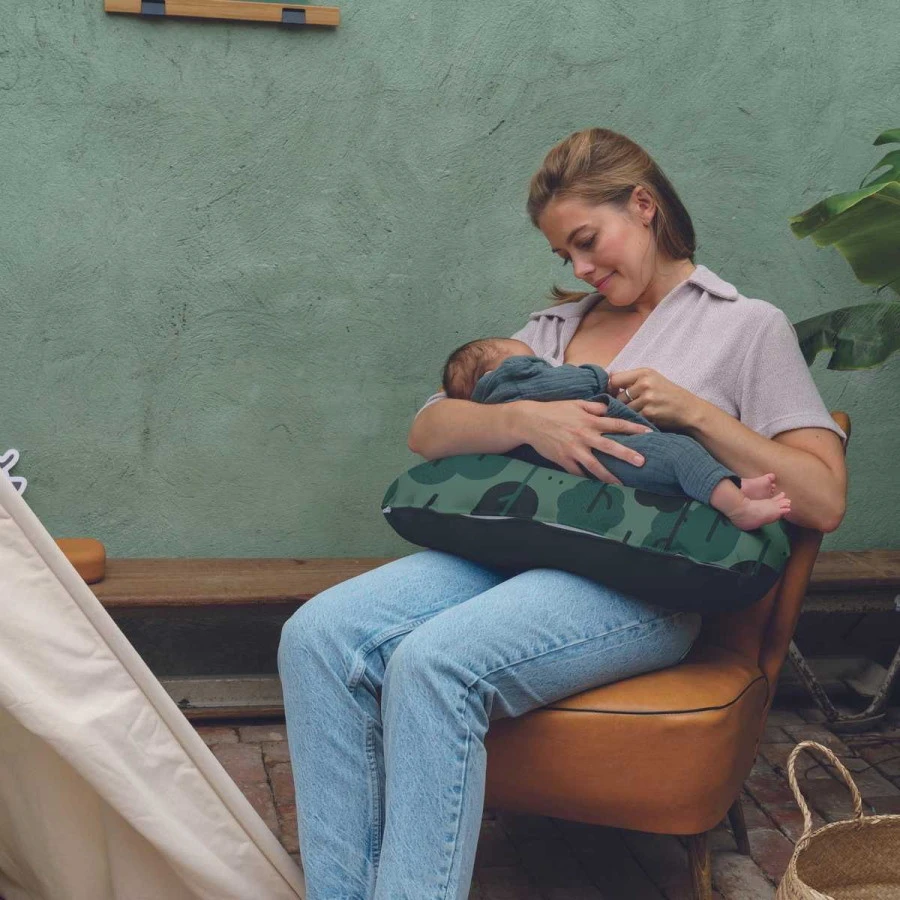 Het kussen heeft een afneembare hoes die gemaakt is van 95% biokatoen en 5% elastaan. De vulling van dit voedingskussen bestaat uit microkorrels uit polystyreen die zeer fijn en stil zijn. Beiden zijn wasbaar in de wasmachine op 30ºC en niet geschikt voor in de droger.