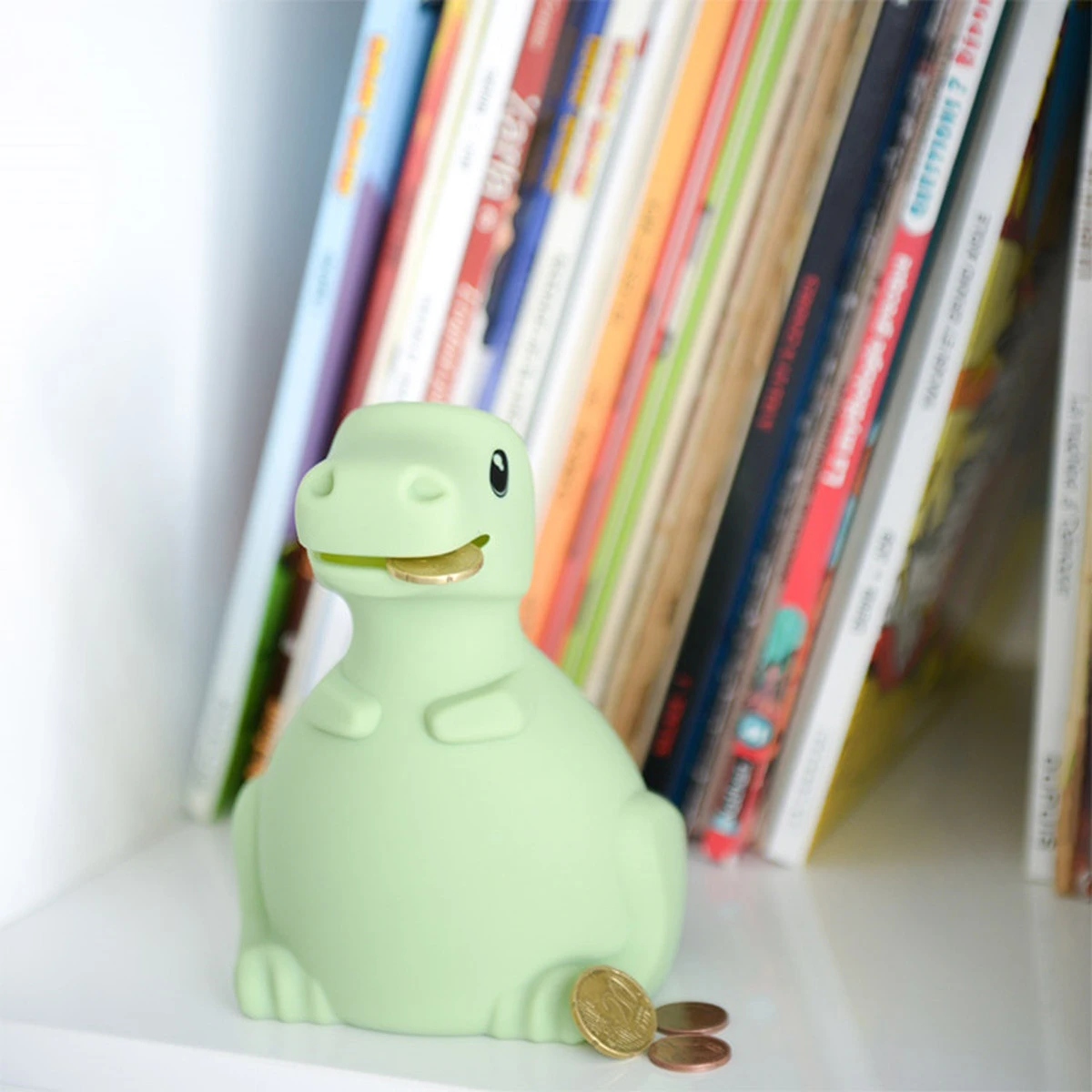 De dino Kidybank wordt niet alleen als spaarpot gebruikt, maar kan ook dienen als leuke decoratie in de kinderkamer. Omdat de spaarpot is gemaakt van zacht siliconen kan je kleine de dino makkelijk vasthouden en zal hij niet snel kapot gaan wanneer hij valt. Wanneer de dino vies is kun je deze gemakkelijk wassen met warm water en zeep, hij is zelfs vaatwasmachinebestendig!