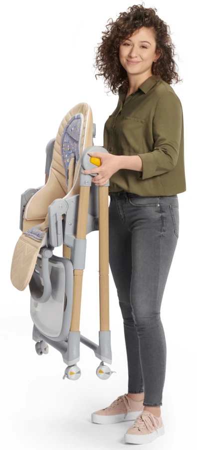 Zodra je kindje wat groter wordt, kun je de rugleuning rechtop zetten en schuif je de stoel gemakkelijk aan tafel! Het zitje is in hoogte verstelbaar, zo past hij aan vrijwel elke eettafel. Tevens zijn de voetensteun en het (afneembare) tafelblad verstelbaar. Spulletjes voor je kindje bewaar je eenvoudig in het zakje achter de stoel of het mandje onderaan. De zitting is gemaakt van eco-leer en is daardoor erg makkelijk schoon te maken.