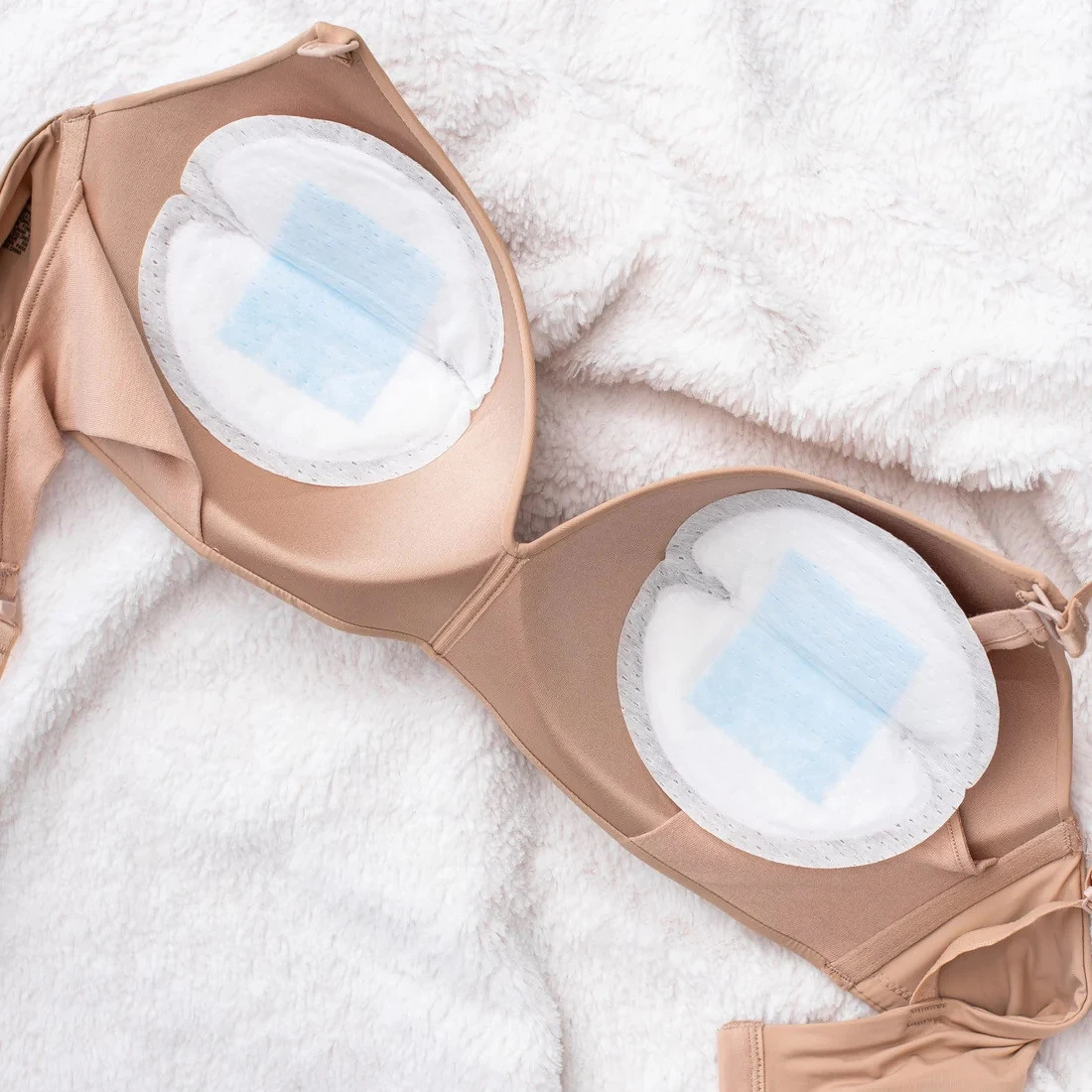 Dankzij de plakkers blijven de borstcompressen op hun plaats zitten en dankzij de vorm zijn ze niet zichtbaar onder kleding. Elk compres is apart verpakt voor gemak en hygiëne.