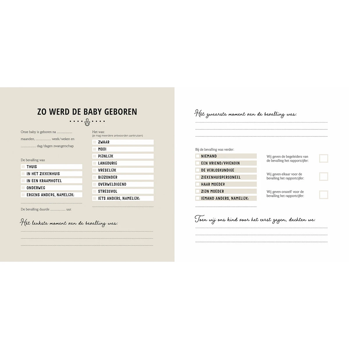 Het boek is gebonden in een stevige linnen kaft met gouden opdruk. Zo worden je waardevolle herinneringen veilig bewaard. De pagina’s zijn gevuld met leuke invulvragen in mooie pastel kleuren op dik papier. Dit babyboek bevat 96 pagina’s.