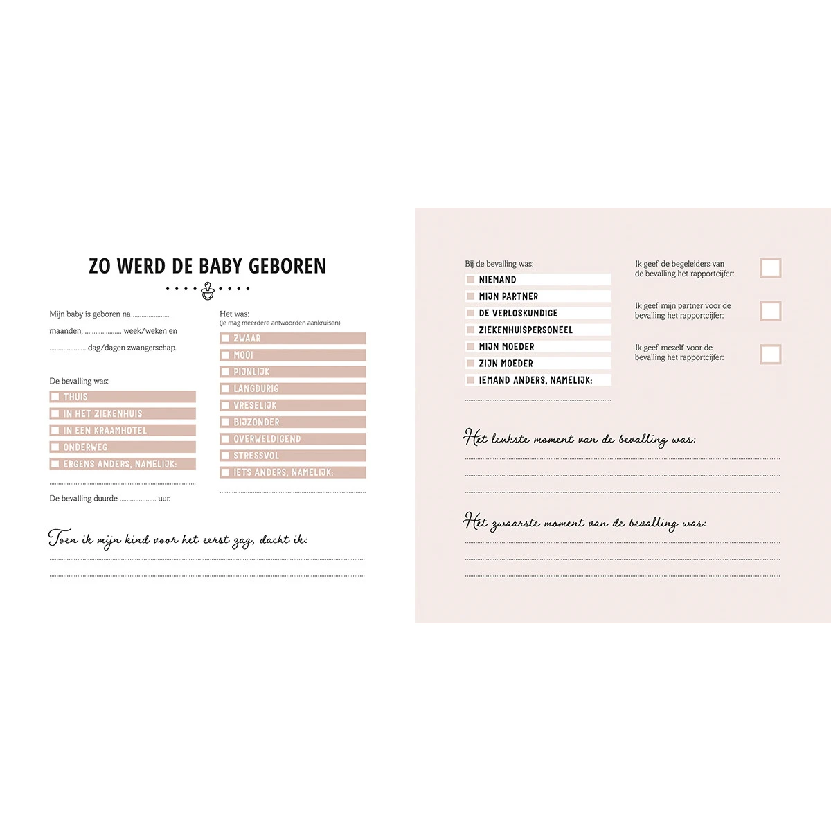 In dit hippe invulboek van Lantaarn staan een hoop leuke pagina’s die je kunt vullen met informatie over de kraamtijd. Daarnaast is er ruimte voor alle kraamvisite om een mooie boodschap achter te laten voor jou en je kleine.