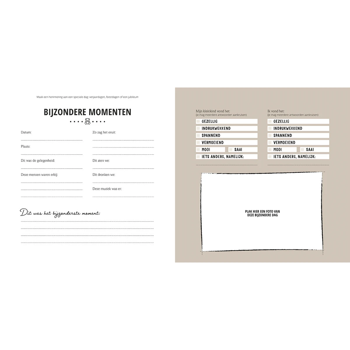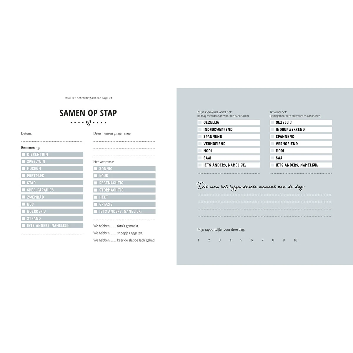 Wat een leuk invulboek van Lantaarn! In dit hippe ‘Speciaal Voor Mijn Kleinkind’ boek kan opa of oma alles vastleggen van hun tijd samen met het kleinkind. Leuke verhalen over uitstapjes, foto’s en nog veel meer.