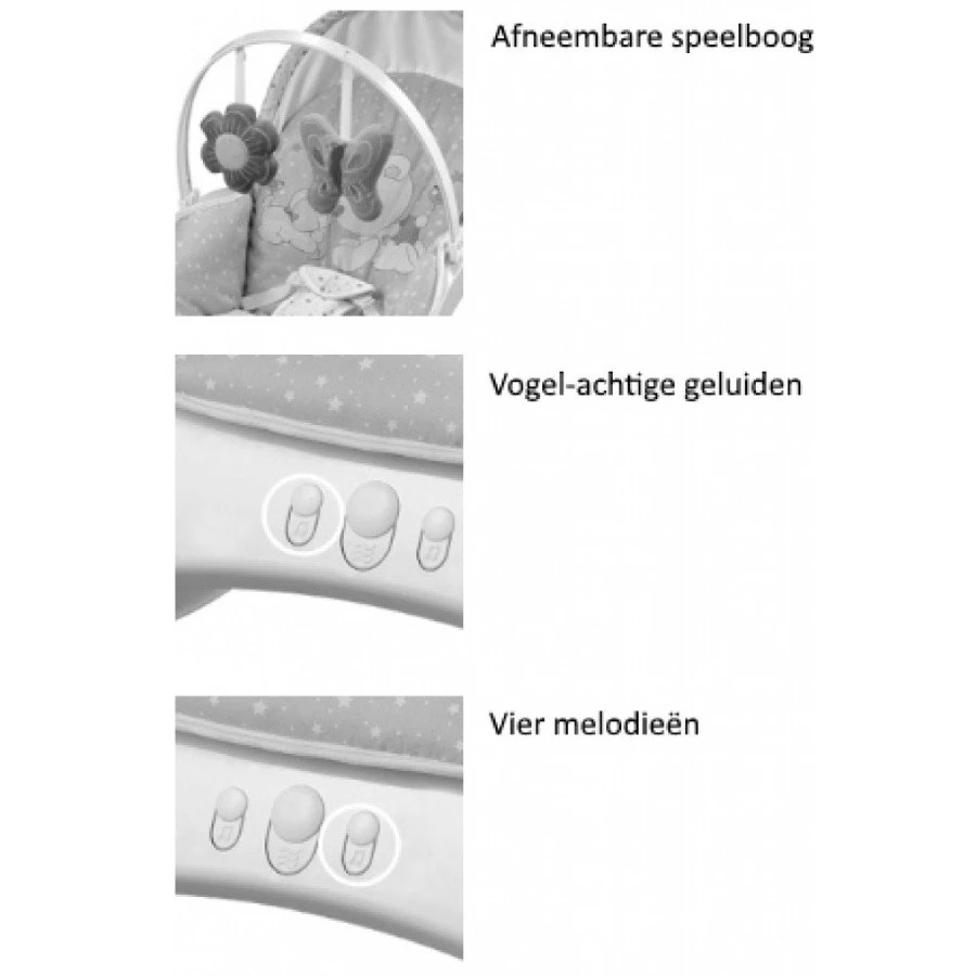 - Voorzien van schommelstand, vibratiemodus en muziek