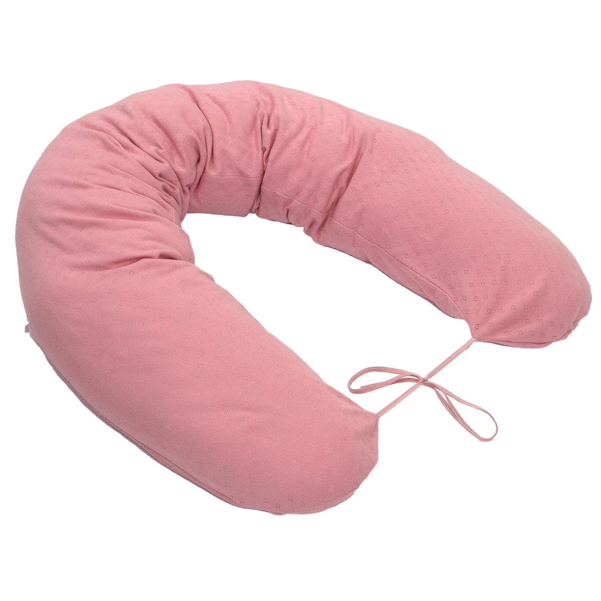 Deze Ajour uitvoering is gemaakt met een heerlijk zachte en luxe stof. Het voedingskussen is voorzien van een afritsbare hoes die in de wasmachine op 40° gewassen kan worden. Om er voor te zorgen dat het voedingskussen rond blijft staan als je kleintje er op zit of tijdens het voeden, zitten er 2 touwtjes aan het einde van het voedingskussen die aan elkaar geknoopt kunnen worden. De lengte van het voedingskussen is 155 cm.