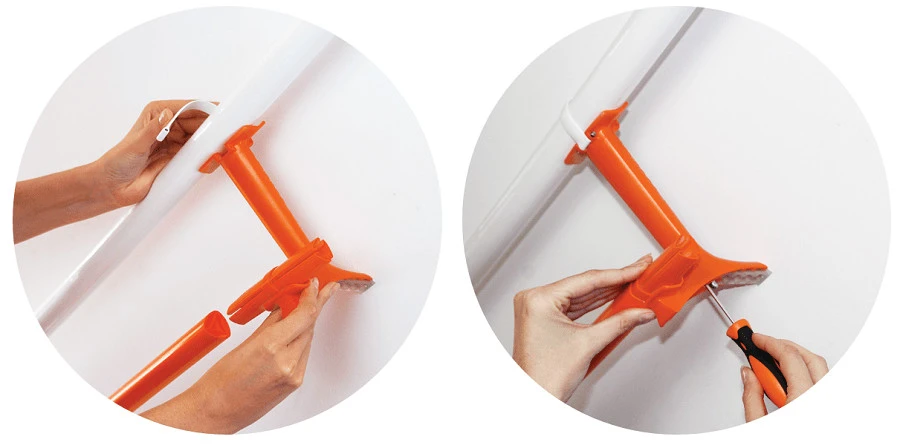 - Schaf voor de lange zijde van de trap (max. 3,65 meter) de Stair Trainer Basisset A aan (apart verkrijgbaar)