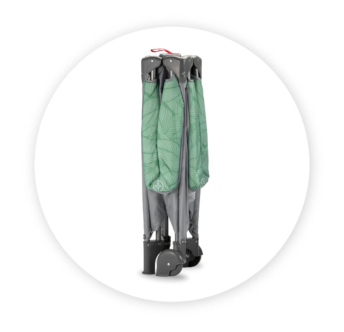 Het campingbedje is heel erg compact en eenvoudig in- en uit te klappen volgens het zogenaamde ‘paraplu principe’. Hierdoor zet je het bedje waar dan ook snel en gemakkelijk op, en kan jouw kindje heerlijk een dutje doen. Na gebruik berg je hem handig om in de meegeleverde draagtas, dat is makkelijk meenemen!