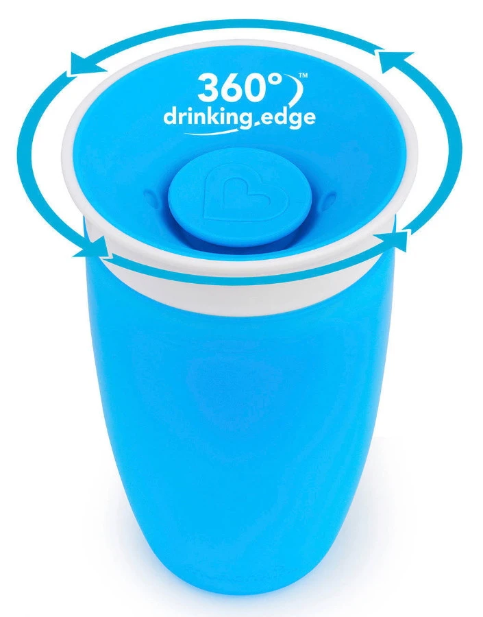 De Miracle 360° Sippy Cup van Munchkin is een 296 ml drinkbeker, waarbij er vanuit alle kanten gedronken kan worden. De beker heeft namelijk geen tuit, maar een knoeibestendige klep die automatisch sluit na het drinken. Dit is beter voor de tanden dan een tuit en helpt daarnaast bij de overgang naar een open beker. De gebruikte Miracle technologie is dan ook 100% waterdicht en 100% lekkagebestendig.