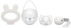 - Set bestaat uit bijtring, fopspeen, speenkoord en speendoosje