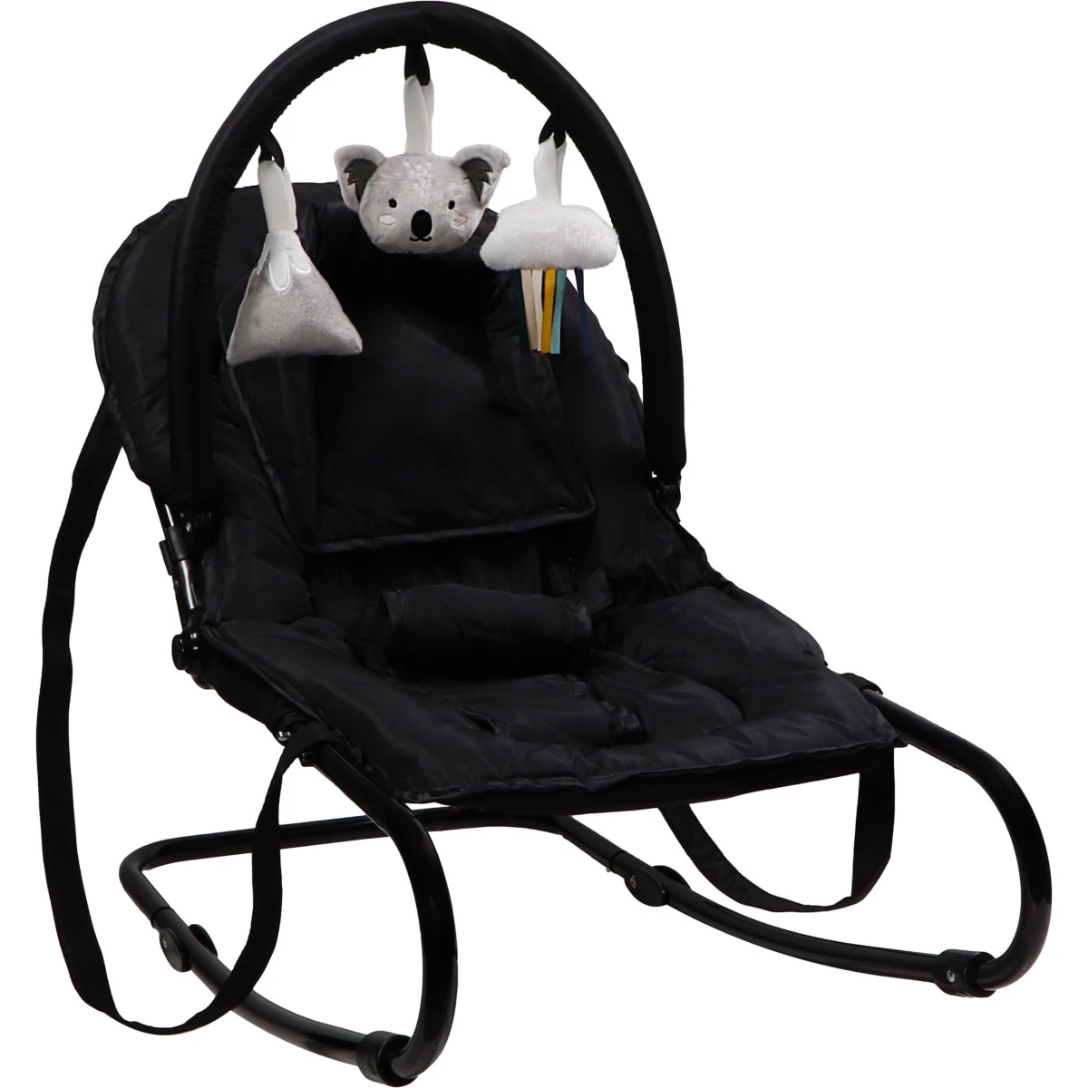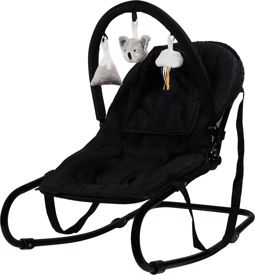 Je kindje hoeft zich niet te vervelen in de wipstoel, hij heeft namelijk een vrolijke (afneembare) speelboog met drie leuke speeltjes en Koala Kyle in de hoofdrol! De wipstoel heeft een schommelfunctie maar ook twee haakjes waarmee je hem vast kunt zetten, handig als je bijvoorbeeld je kindje eten wil geven in de stoel. De bouncer kun je gemakkelijk verplaatsen of meenemen dankzij de twee handvaten.