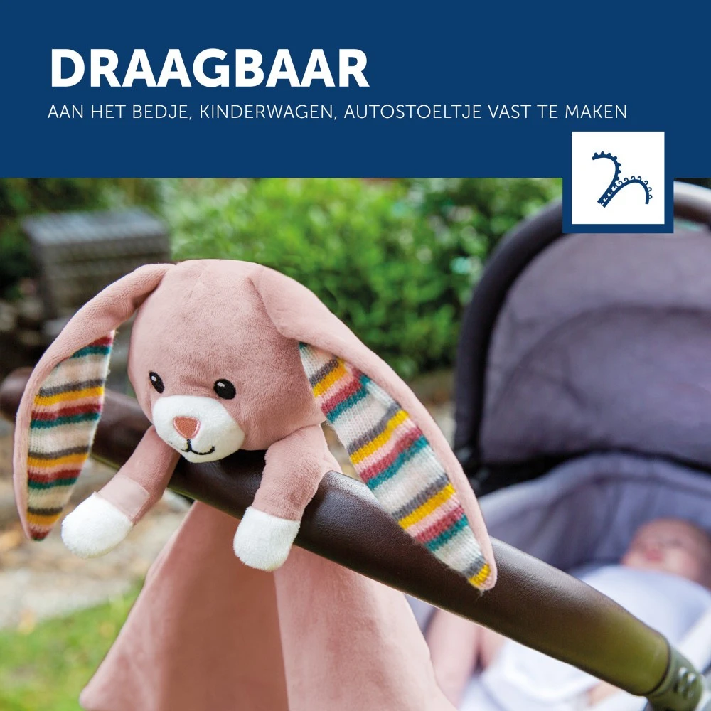 Je kindje valt rustig in slaap met dit heerlijk zachte Becky het Konijn Heartbeat Knuffeldoekje van Zazu!