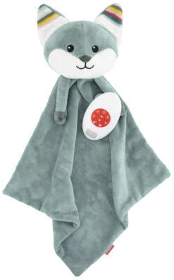 Felix speelt 6 verschillende geluiden af met de keuze uit een hartslag, natuurgeluid, white noise en 3 fijne slaapmelodietjes. Na 10 minuten schakelt de muziek automatisch uit. Als je kleine huilt, zorgt de huilsensor ervoor dat het laatst gekozen nummer weer wordt afgespeeld. Het knuffeldoekje komt met een module waarmee je de geluiden kunt kiezen en het geluidsvolume kunt regelen. De module kun je na het gekozen geluid in het hoofdje van het doekje plaatsen.