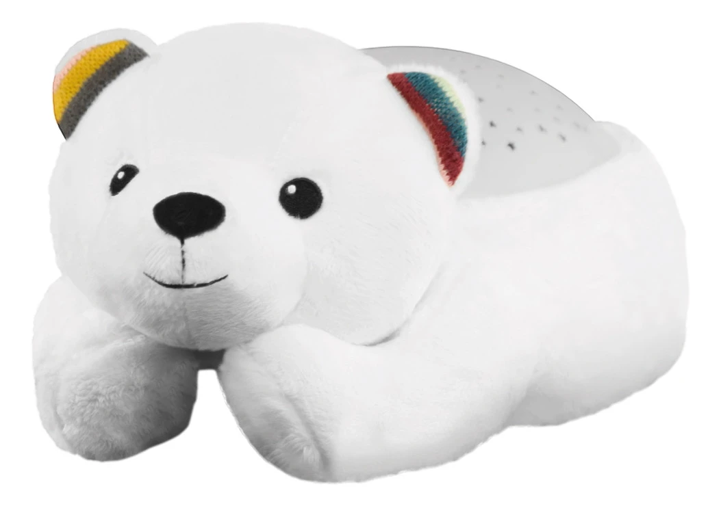 Polly de IJsbeer van Zazu zorgt ervoor dat je kleintje heerlijk wegdroomt in zijn of haar kamertje. De schattige ijsbeer projecteert een prachtige sterrenhemel op de muren en het plafond van de slaapkamer. Daarbij kun je kiezen uit 4 kleurstanden: groen, oranje, blauw of afwisselende kleuren.