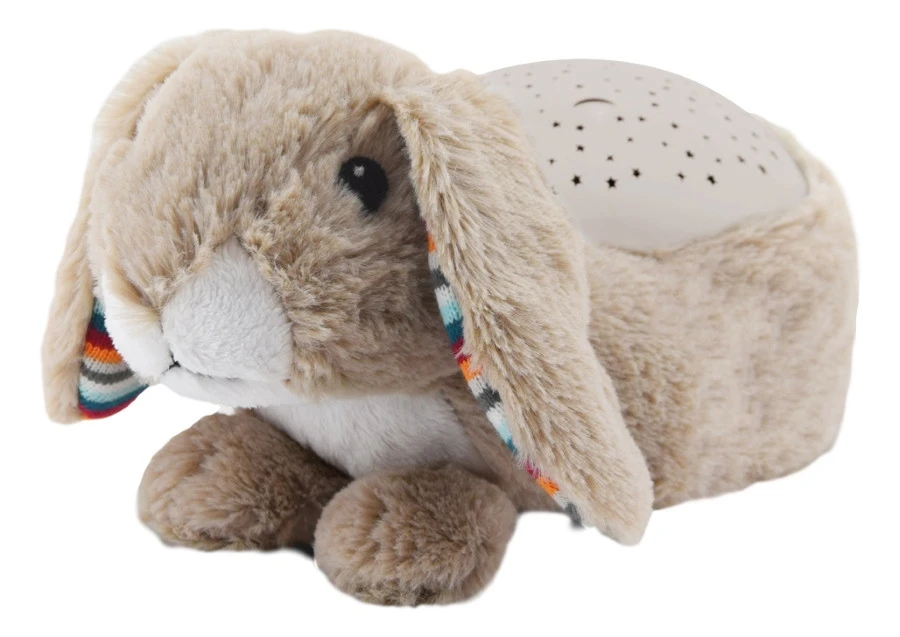 Ruby het Konijn van Zazu zorgt ervoor dat je kleintje heerlijk wegdroomt in zijn of haar kamertje. Het schattige konijn projecteert een prachtige sterrenhemel op de muren en het plafond van de slaapkamer. Daarbij kun je kiezen uit 4 kleurstanden: groen, oranje, blauw of afwisselende kleuren.