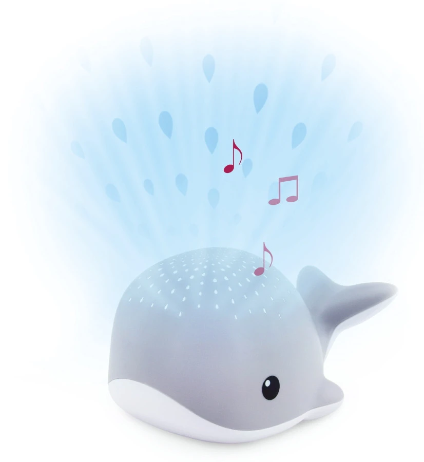 Wally projecteert waterdruppels in verschillende kleuren (blauw, groen, rood óf regenboogkleuren) tegen het plafond. Daarnaast speelt Wally drie verschillende melodieën, namelijk oceaan geluidjes, hartslag én slaapliedjes. Altijd een kleurtje en een geluidje dat bij jouw kindje past.